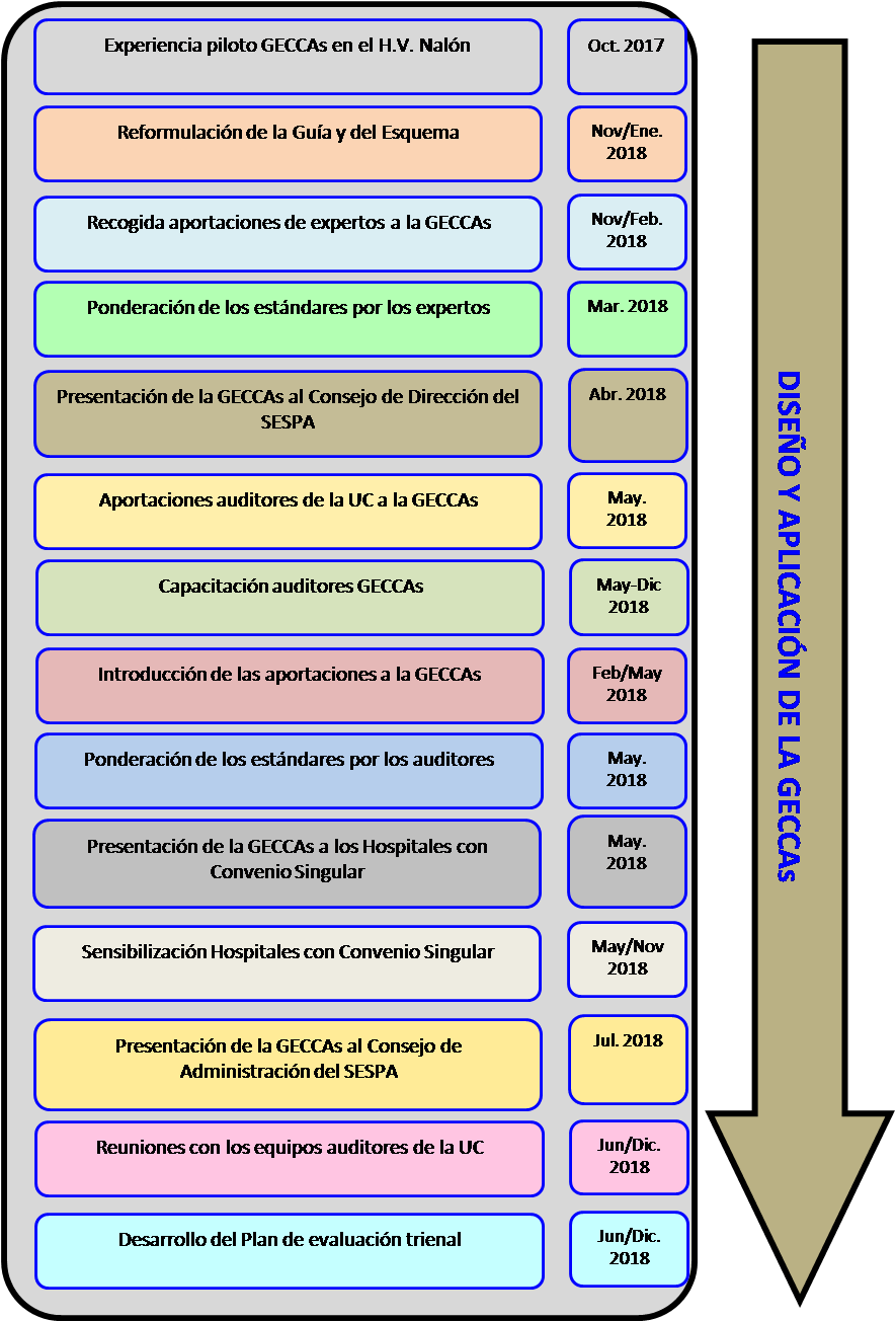 Repercusión sobre la Evaluación GECA:La siguiente Evaluación GECA de cada hospital se realizará con una nueva versión de la GECA, que mantendrá la estructura de la primera, pero incorporará en cada dominio un estándar que pondrá en valor las acciones de mejora implantadas.