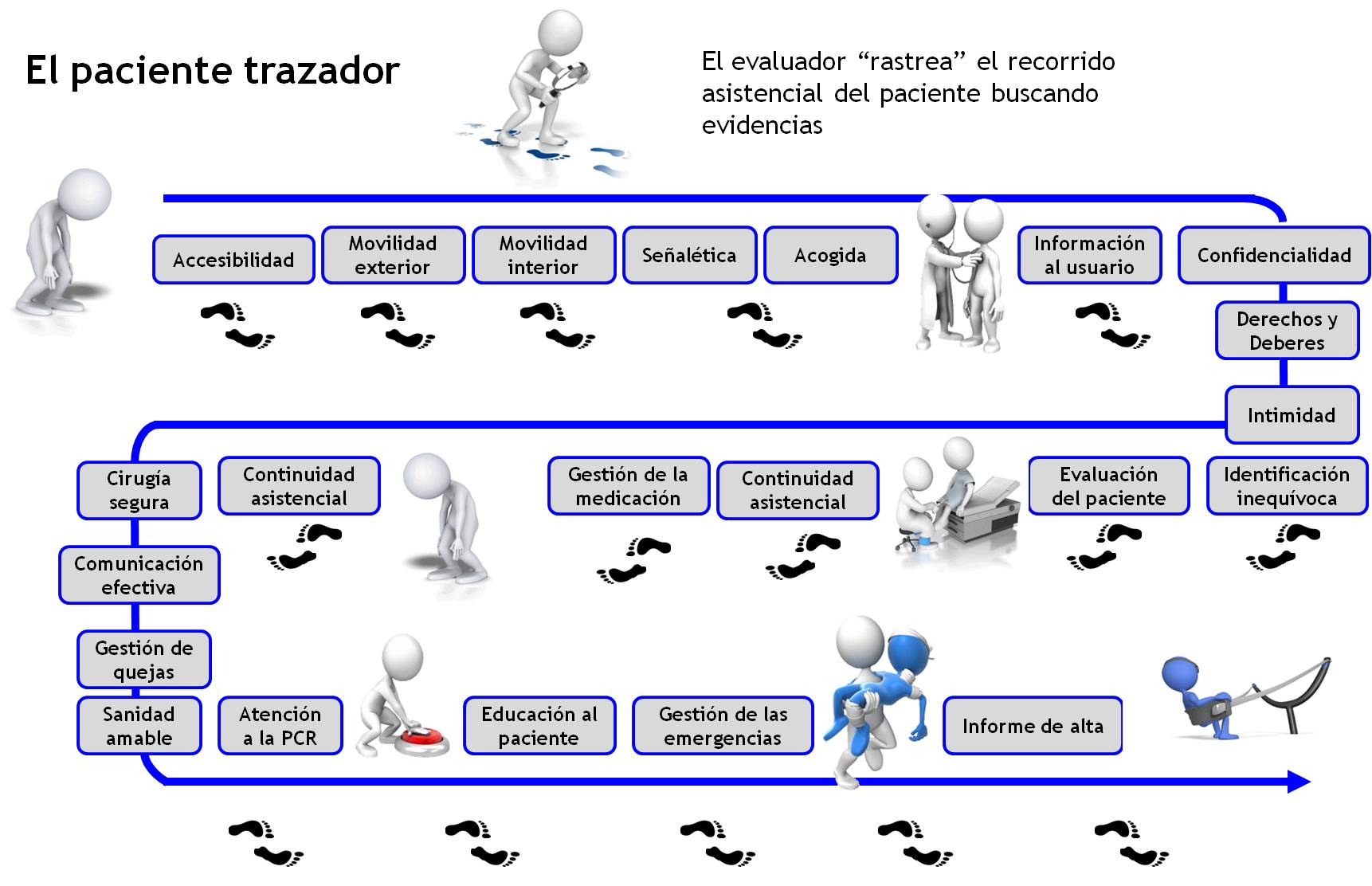 Los estándares básicosDe los 350 estándares hay 53 estándares denominados básicos o esenciales, que han sido escogidos por consenso de expertos y que todos los centros hospitalarios han de cumplir inexcusablemente. Son requisitos, algunos de carácter normativo o legal, otros son las Metas Internacionales de Seguridad del Paciente (MISP) o directrices de la OMS o del Ministerio de Sanidad, de importancia tal, que no se permite no abordarlos, aunque sea parcialmente. La relación detallada de los estándares básicos se señala en la propia guía. El informe de evaluaciónEl informe de evaluación tendrá la misma estructura que la desarrollada en la Guía de Estándares y Circuitos de Calidad Asistencial, es decir, se agrupará por dominios y circuitos de calidad. El informe recogerá las oportunidades de mejora que puedan ser útiles al centro auditado. La forma de realizar la evaluación, la valoración de los estándares y la metodología de las auditorías, se desarrollan en profundidad en el documento “Esquema de Evaluación de la GECA”. Hospitales evaluados